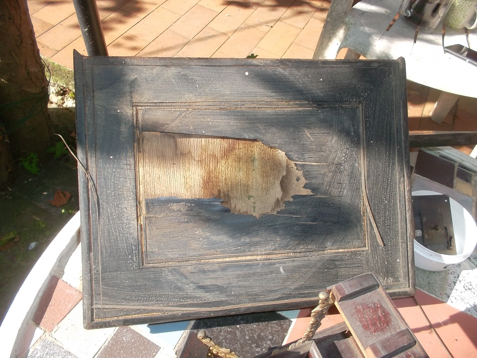 - La réparation en elle-même, les pièces endommagées sont réparées ou remplacées, à l'aide de nouvelles parties faites sur mesure, bois, pâte à bois, mastics, colles, chevilles...